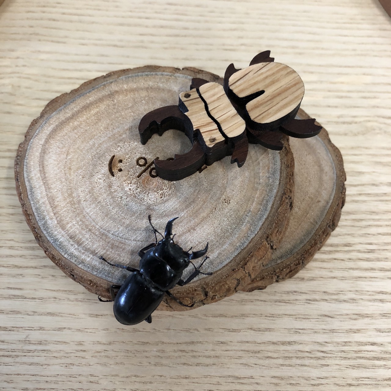 讓甲蟲的造型和木頭的質感融合在一起,