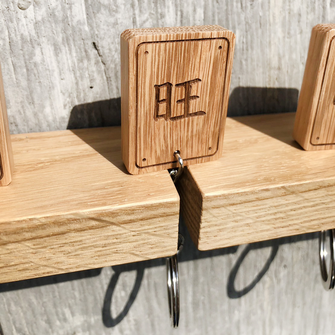 每個木片鑰匙圈都有不同的文字或圖案,當家人們都回家了,